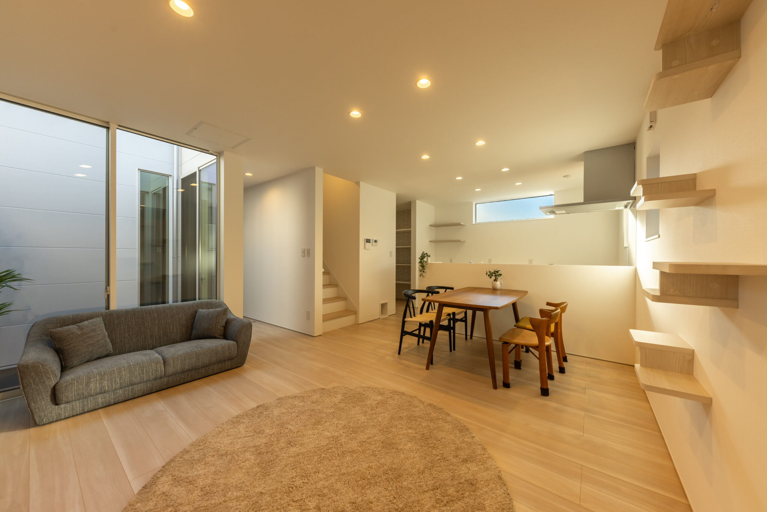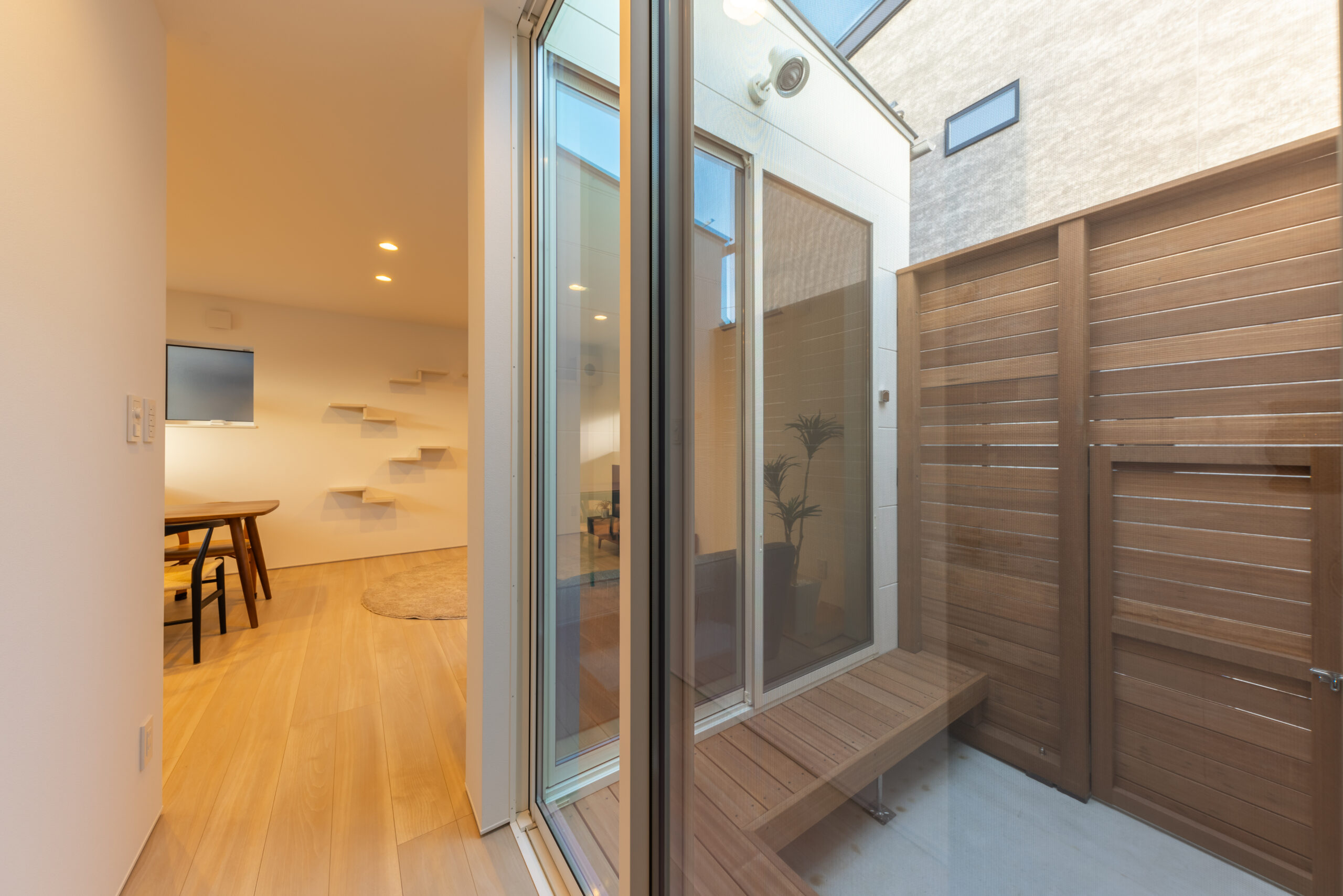 ウッドデッキ キッチン シンプルノート 中庭 半平屋